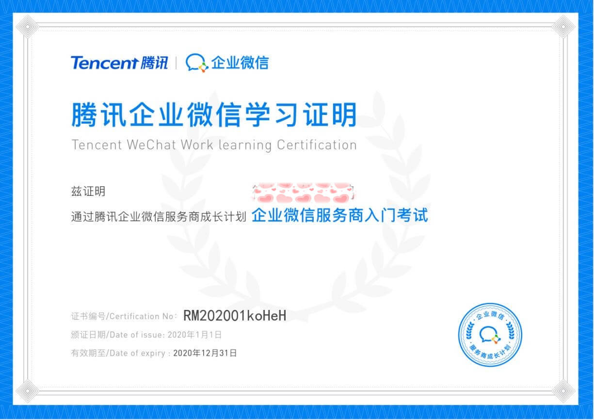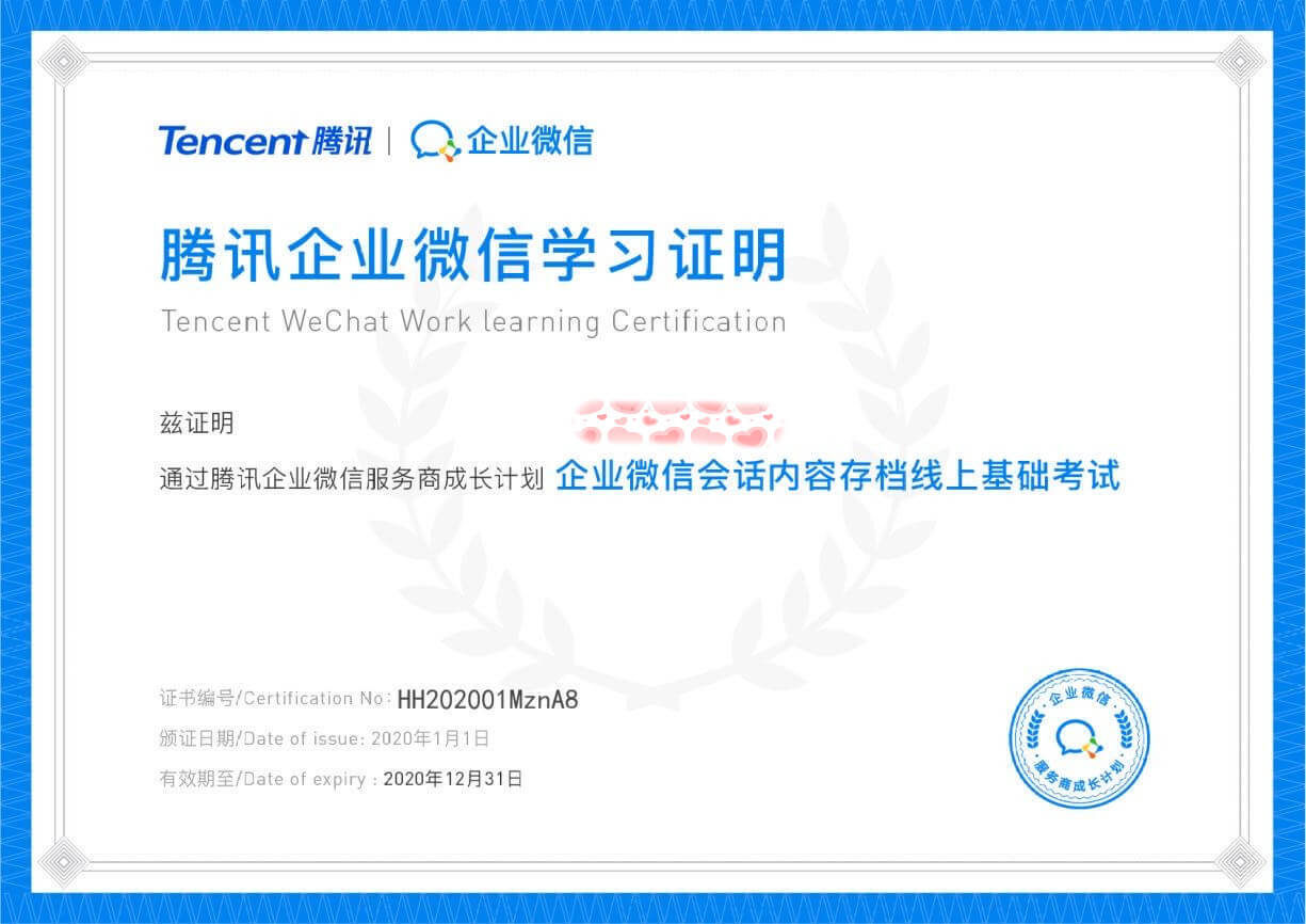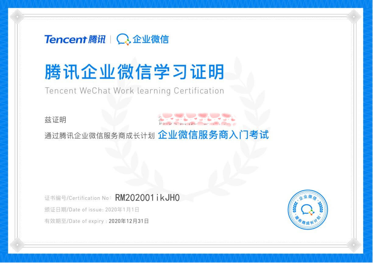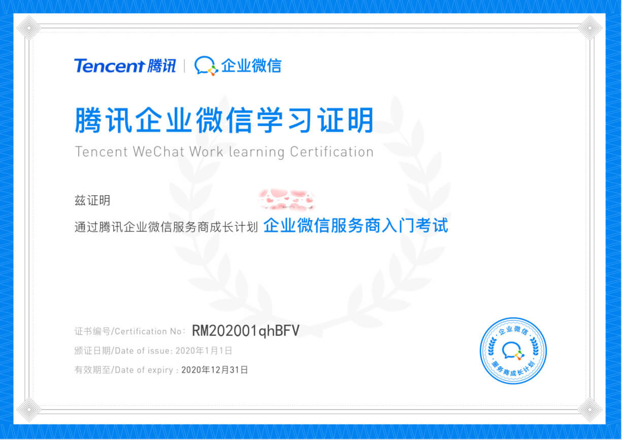 甘肅鑫鑫源商貿有限公司團隊-企業微信服務商學習證書